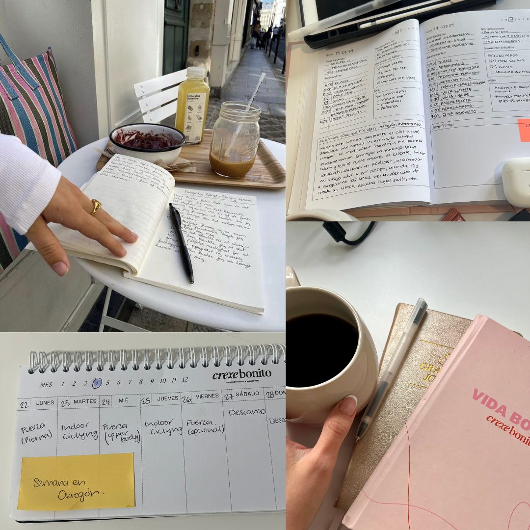 Usa herramientas físicas y digitales. Aplicaciones, calendarios, agendas, block de notas, etc. Mis favoritas desde hace muchos años son la aplicación de Notas de mi celular (iOS), Notion y mi agenda física Crexe Bonito.